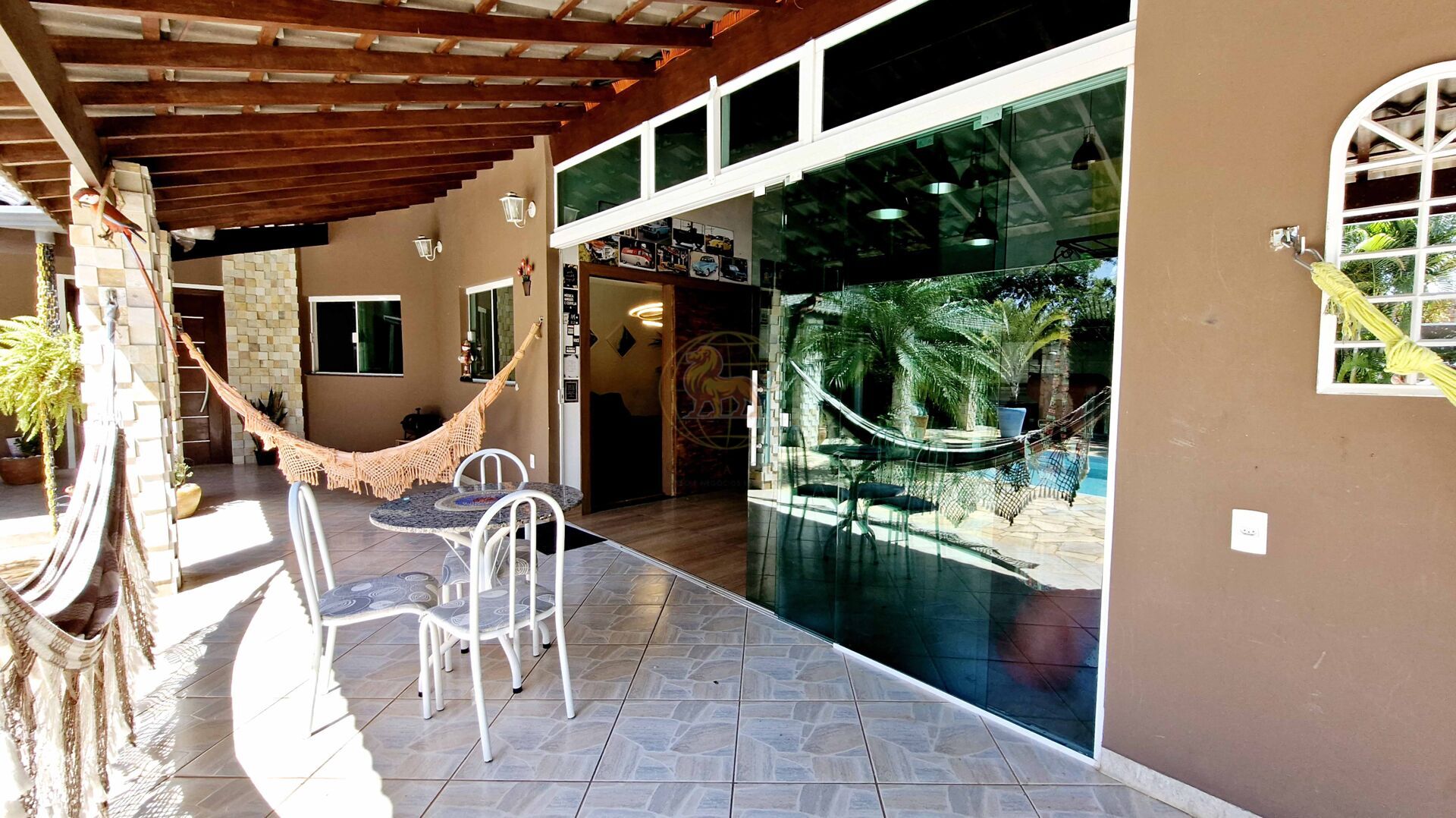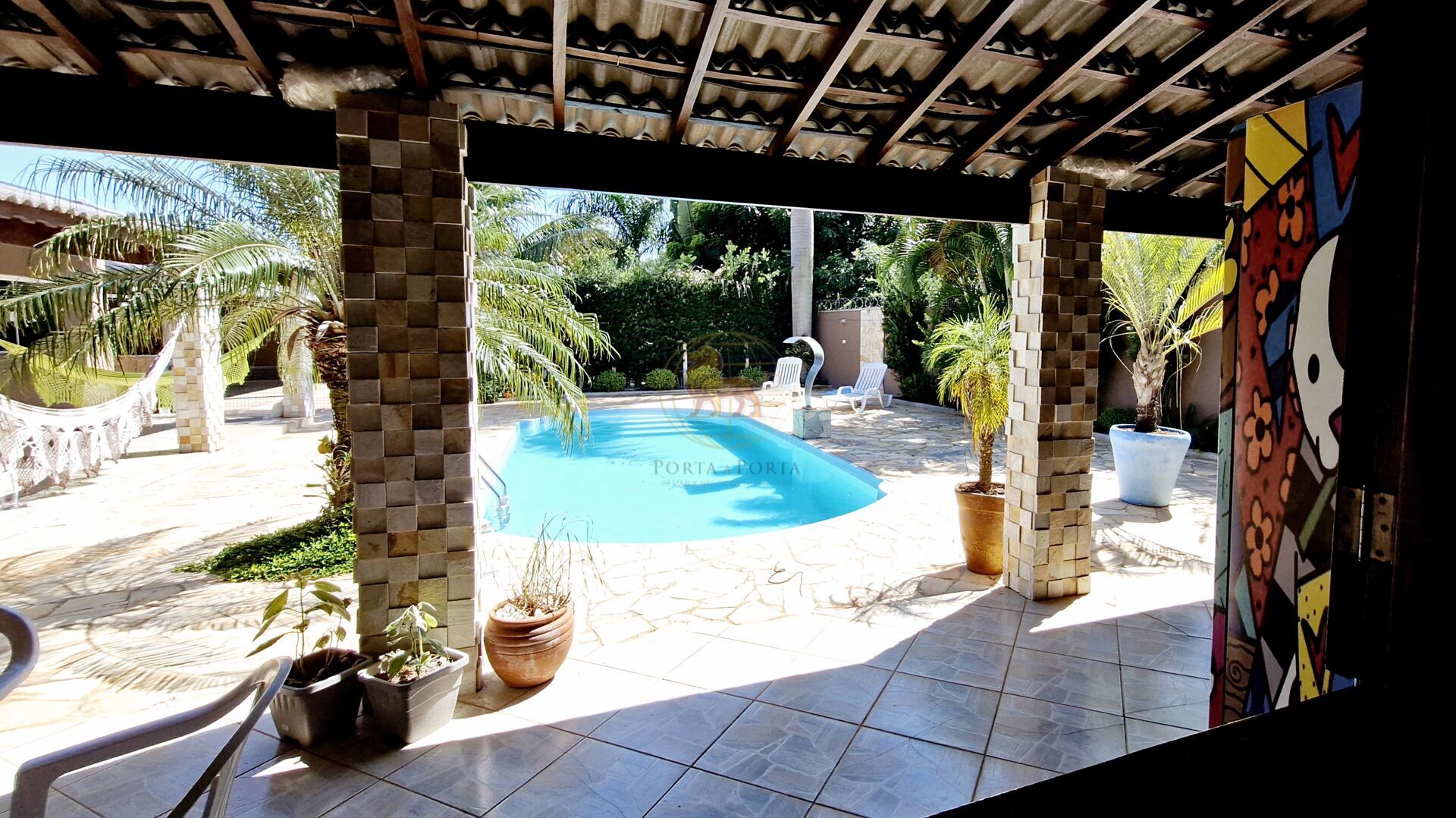 A área externa é um verdadeiro refúgio, com piscina privativa para lazer, pomar formado e amplo quintal, perfeito para momentos de convivência e contato com a natureza.